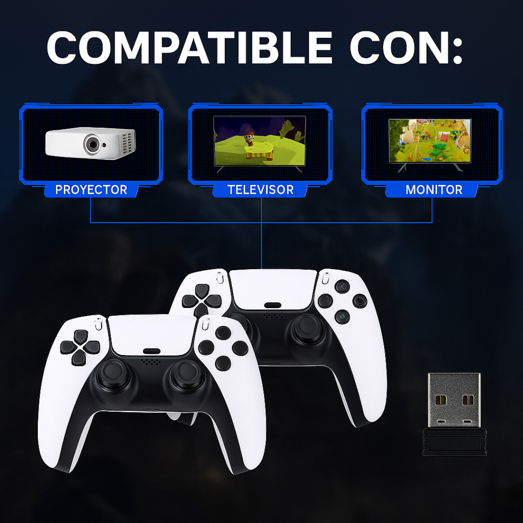 Incluye mandos inalámbricos: solo conecta y juega, sin instalaciones ni configuraciones.